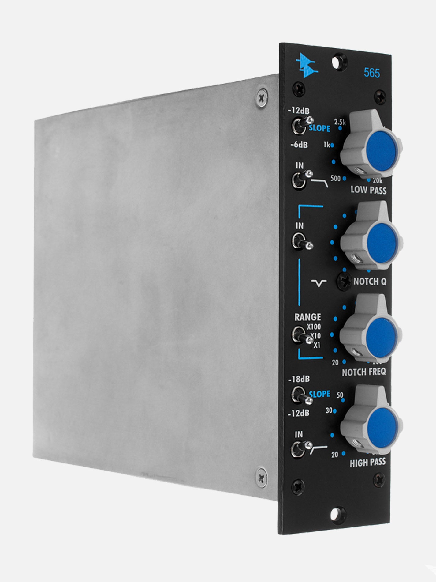 Variable notch filter with adjustable Q, sweepable from 20Hz–20kHz