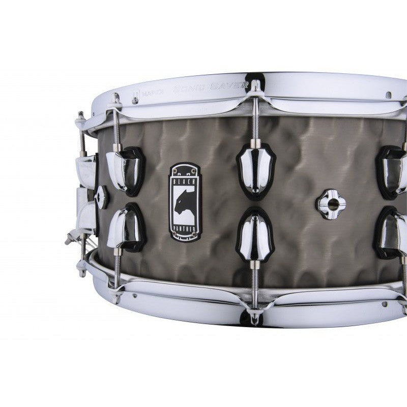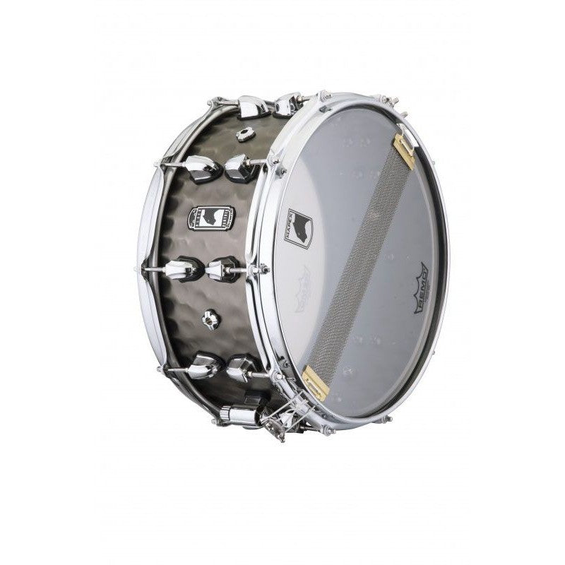 CAJA MAPEX BPNBR465HCN PERSUADER. 14" x 6,5". Serie Black Panther 2020. Casco de Brass (Latón) martilleado de 1,2mm. Aro Sonic Saver. Parcher Remo. La caja Persuader lidera con una oscuridad autoritaria. El casco de brass martilleado da un formidable estallido con un punch innegable.