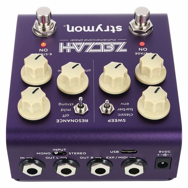 6-Stage phaser with smooth transition from phasing to flanging to chorus, all with adjustable resonance