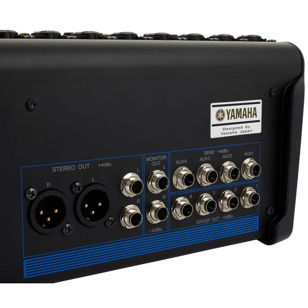 16 entradas de micrófono con preamplificadores de micrófono 'D-Pre' con circuito de conmutación Darlington invertido (XLR/Jack de 1/4") con alimentación phantom de +48V (Canales 1-8 con compresor)
