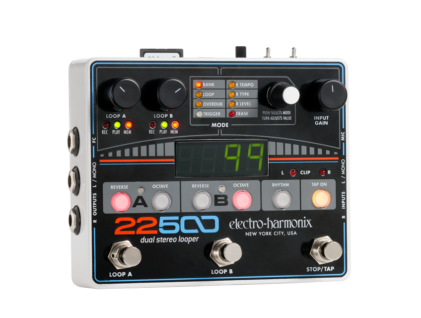 Combining a compact footprint, a comprehensive feature set and an intuitive user interface, the 22500 delivers powerful looping capabilities in an affordable, easy to use package. It records high quality, non-compressed audio directly to a removable SDHC card (4 to 32GB) and each card holds up to 100 individual loops. Includes an 8GB card for up to 12 hours of recording time. 9.6VDC 500mA power supply included. Optional Foot Controller for Loop up/down function (sold separately).