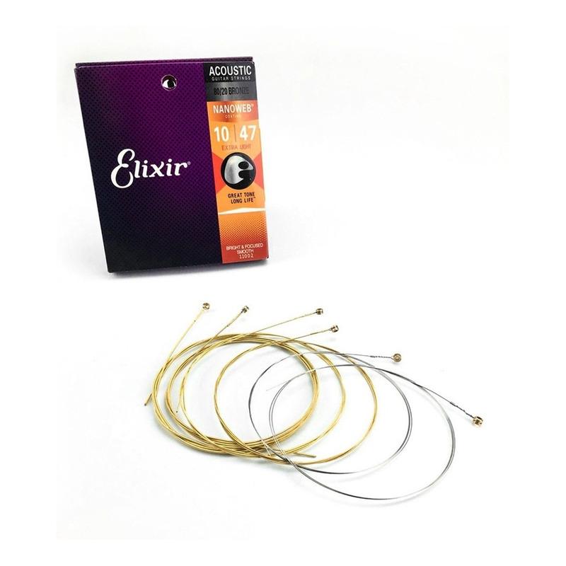 Características del juego de cuerdas para guitarra acústica Elixir 11002 Nanoweb 10-47 Bronze 80/20