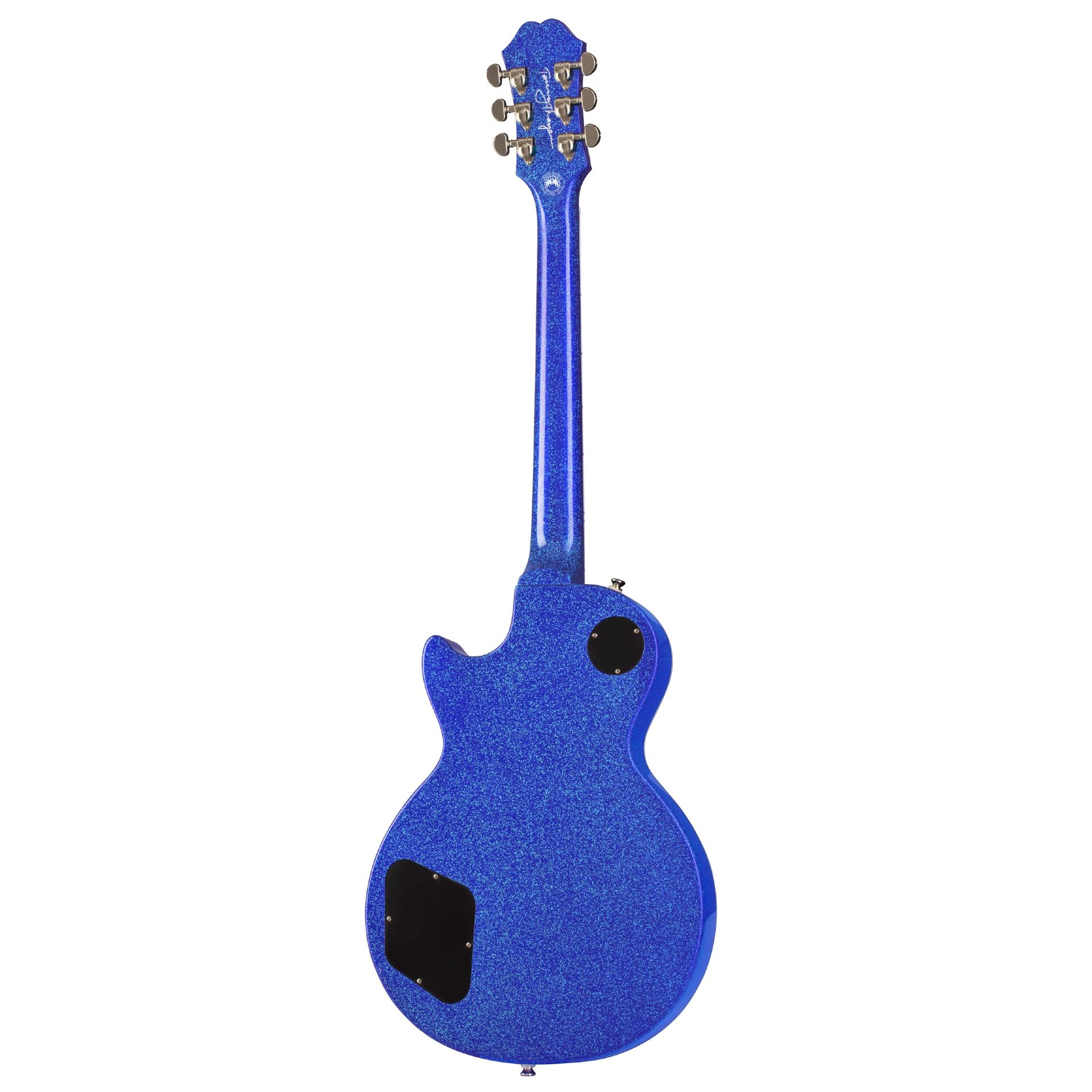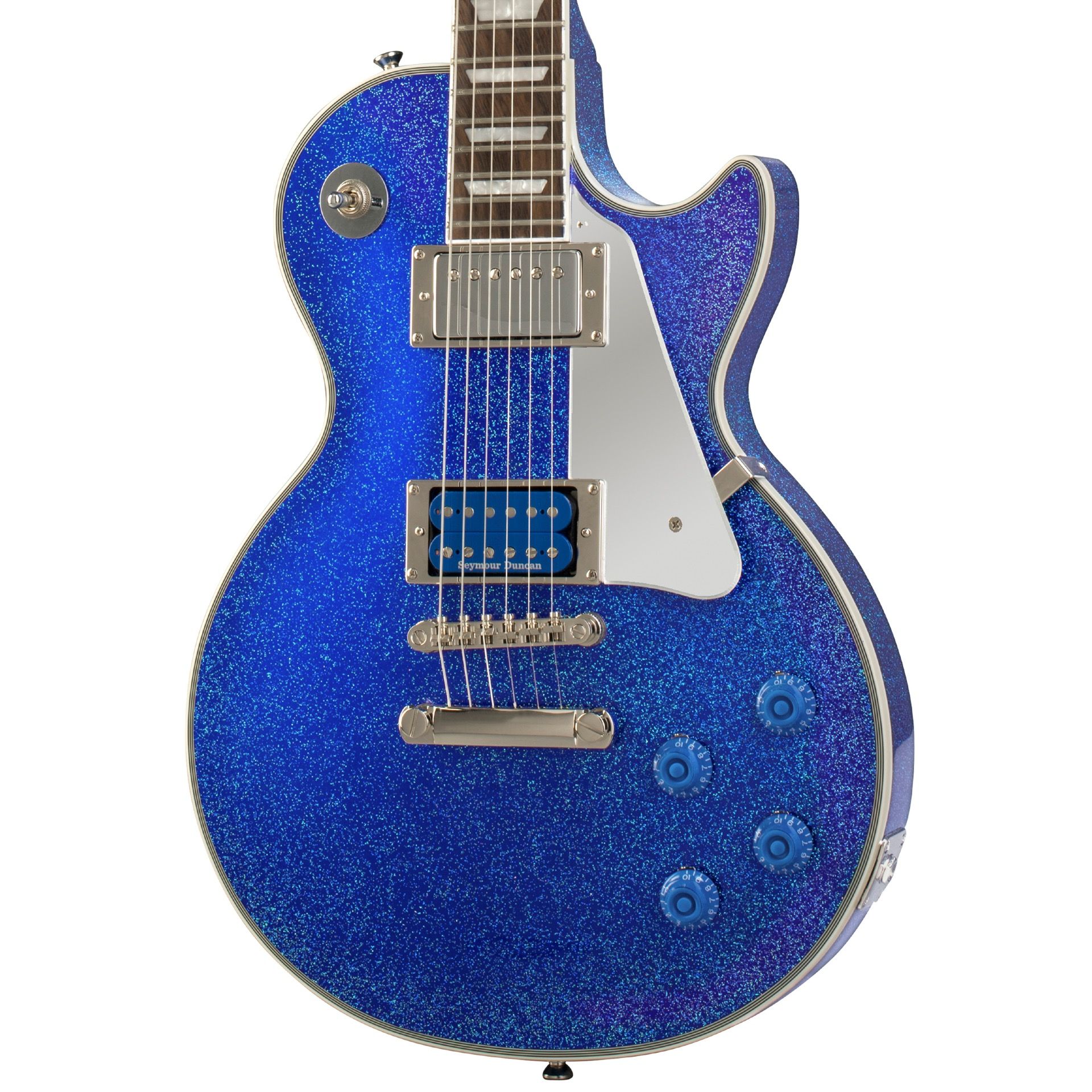 The Tommy Thayer Electric Blue Les Paul was designed by KISS legend Tommy Thayer and is his fourth signature model with Epiphone. The unique Electric Blue finish came about via fellow KISS bandmate Eric Singer, who turned Thayer on to custom painter John Douglas who collaborated with the Epiphone team on the color. Thayer says, "I play the Epiphone all the time and they sound like a great guitar should." Thayer's guitar is equipped with Seymour Duncan® humbuckers, engraved Tommy Thayer metal truss rod cover, chrome-finished pickguard, eye-catching Electric Blue sparkle finish, Spaceman logo on the back of the headstock, and a custom blue hardshell case. Available for a limited time.