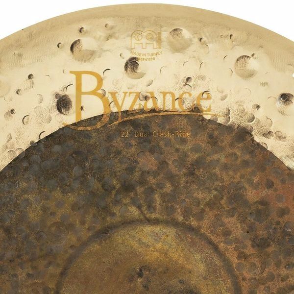 Meinl 22" Byzance Dual Crash/RideSize: 22"Byzance seriesB22DUCRExtra dry (natural) and brilliant finishMaterial: B20 bronzeHand hammeredExciting contrast between extra dry and brilliant finish due to the combination of hammering...