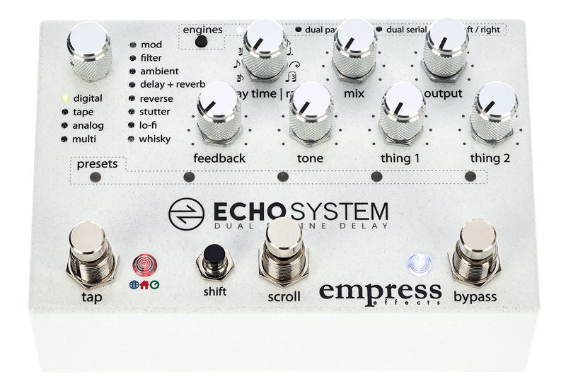 Numerous emulations of classic digital, tape and analogue delays as well as Empress' s own delay versions