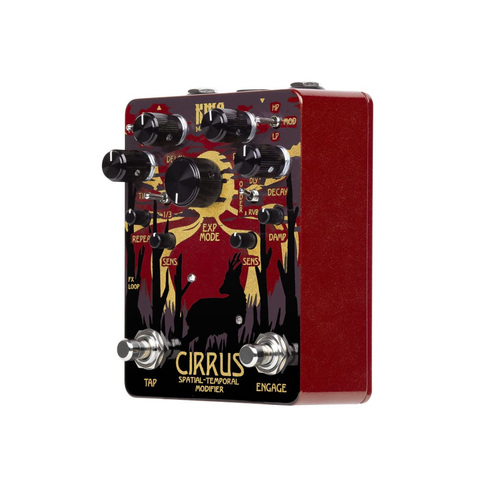 In addition, the Cirrus offers 3 different delay and reverb modes, each with a dynamic function controlled by the attack and Sensitivity Control to allow for funky, celestial sounds