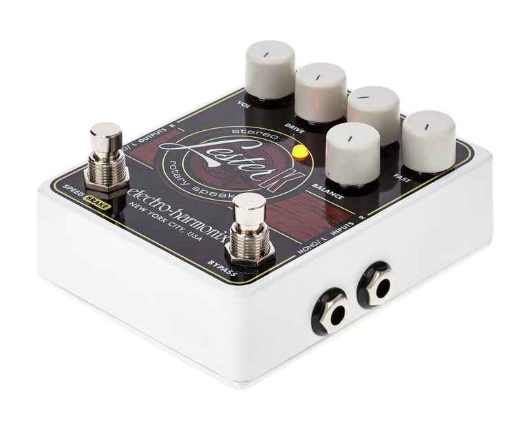 Rotary speaker emulation at its finest in a compact, easy-to-use package. Stereo outputs provide a lush, realistic sound with either stereo or mono inputs. Tube-style overdrive is variable and the speaker balance can be fine-tuned. Switch between adjustable Fast and Slow modes to achieve that iconic sound when the big cabinet ramps up to speed and down.